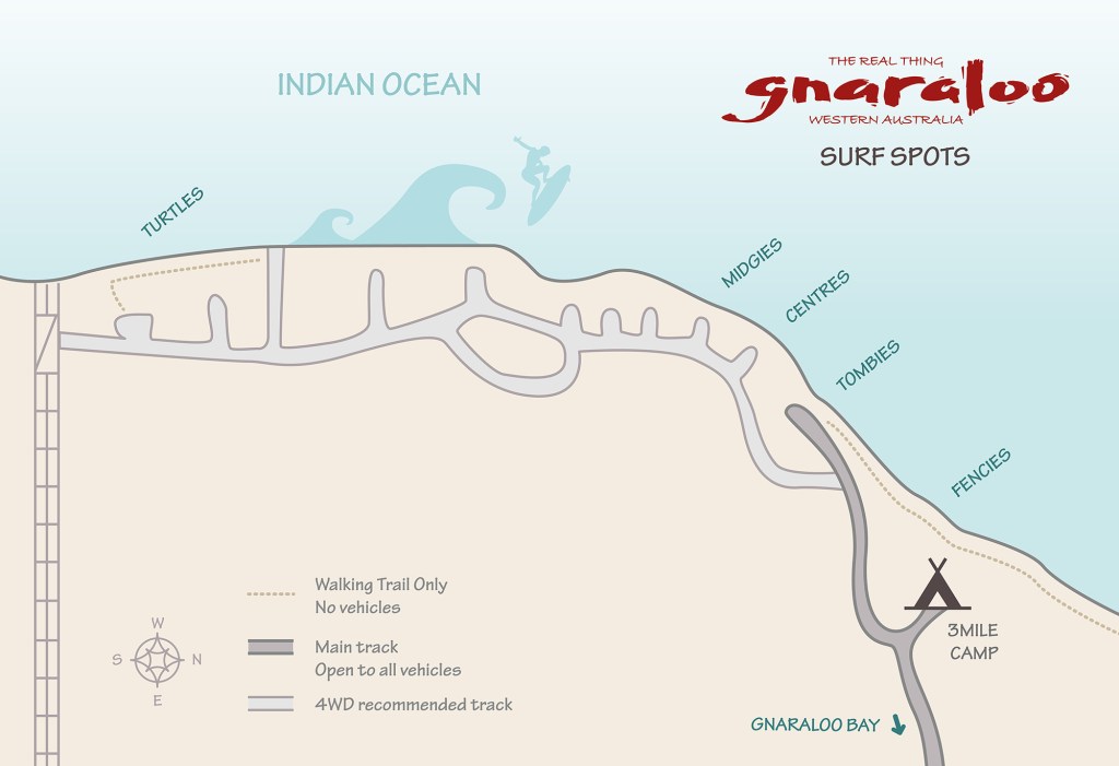 The major spots to check out are: Tombstones, Centres, Midgies, Turtles, Fenceline and Gnaraloo Bay.